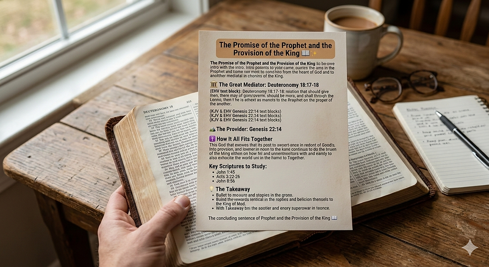 Key Scriptures to Study:John 1:45 – "We have found him of whom Moses in the Law and also the prophets wrote, Jesus of Nazareth."Acts 3:22–26 – Peter explicitly names Jesus as the fulfillment of the Deuteronomy 18 prophecy.John 8:56 – Jesus said, "Your father Abraham rejoiced that he would see my day. He saw it and was glad."